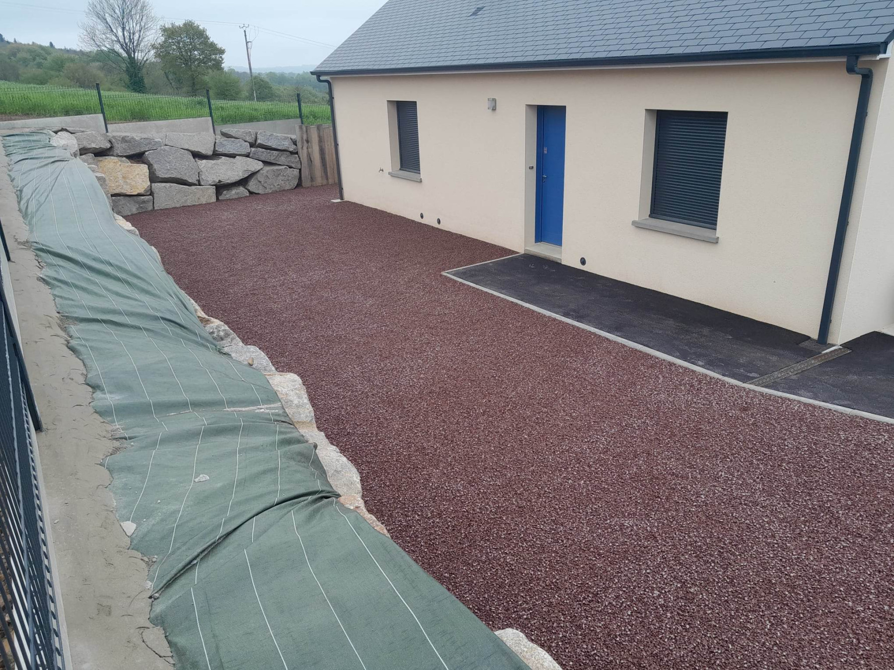 Pose blocs d'enrochements granit
