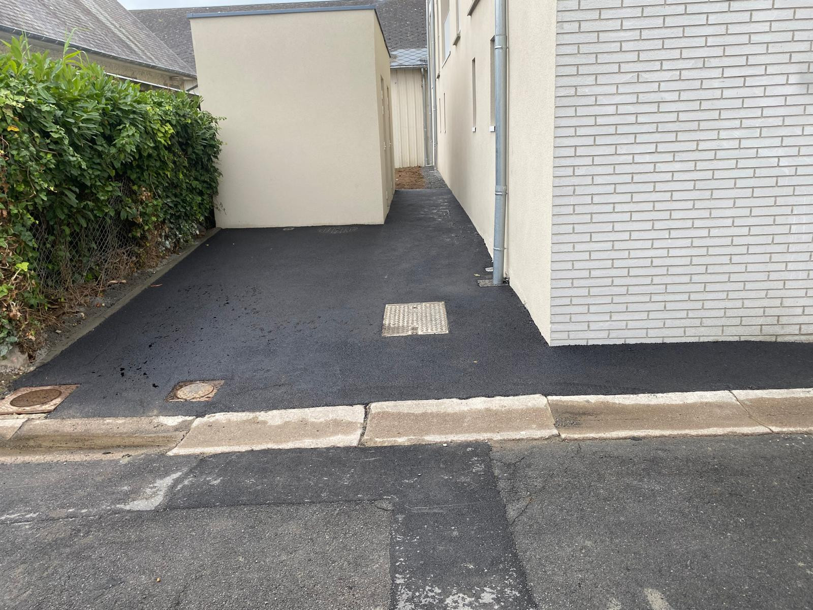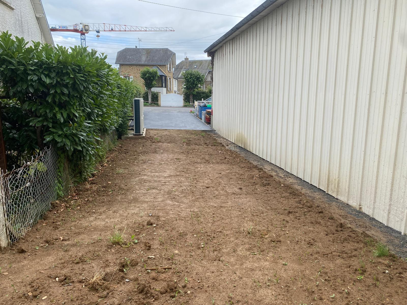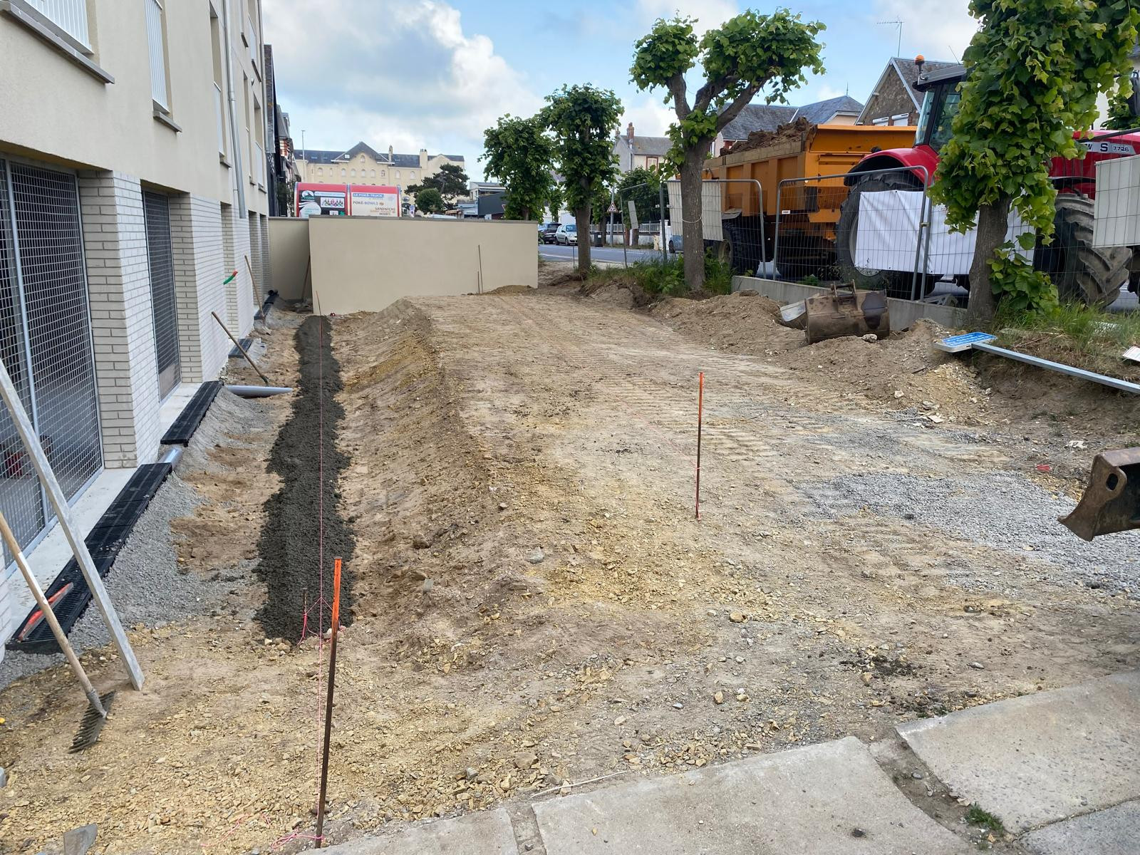 Nous sommes intervenus sur les abords d’un immeuble à Jullouville pour préparer les accès extérieurs :