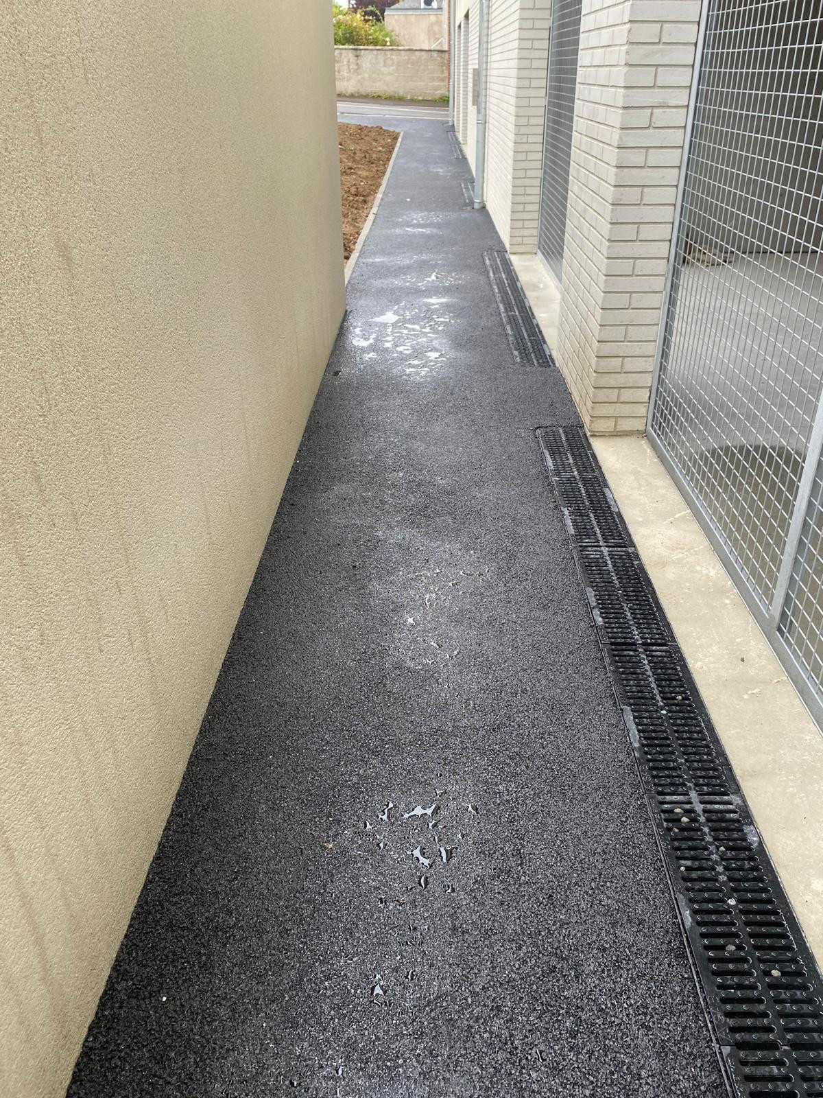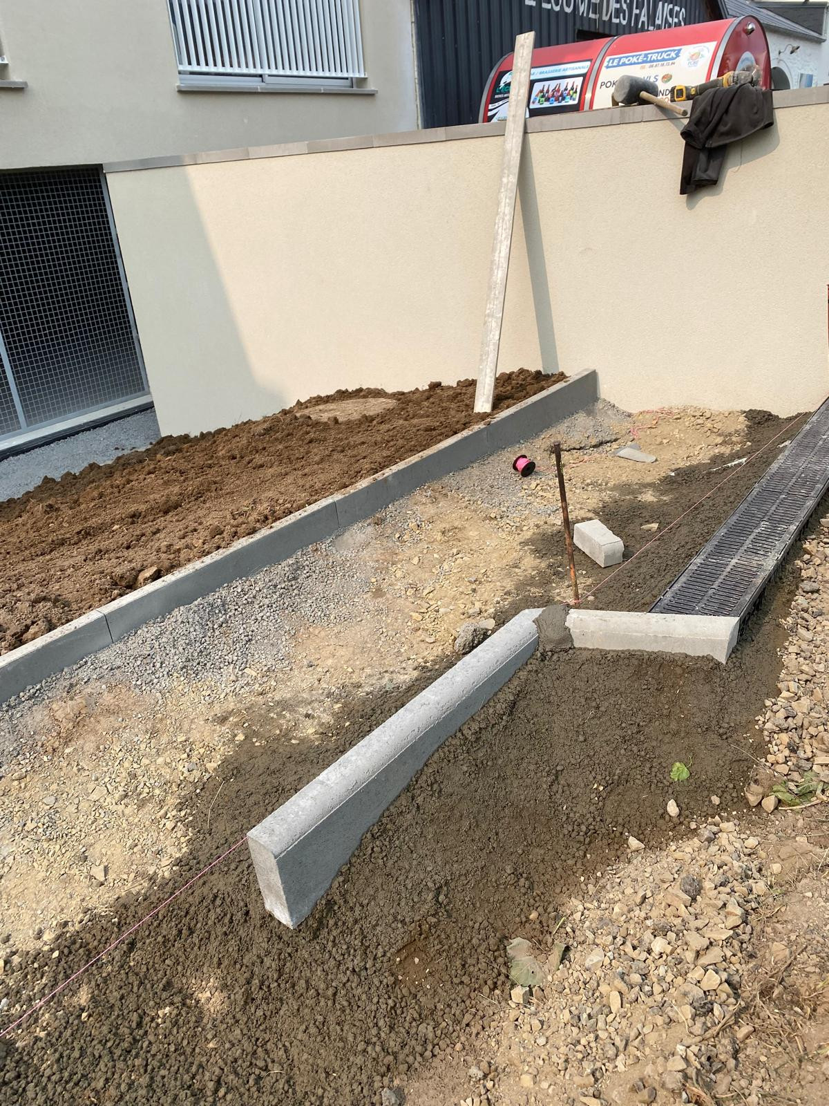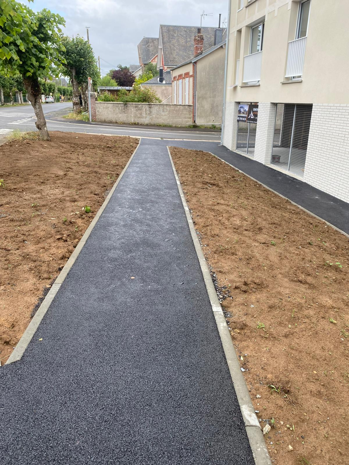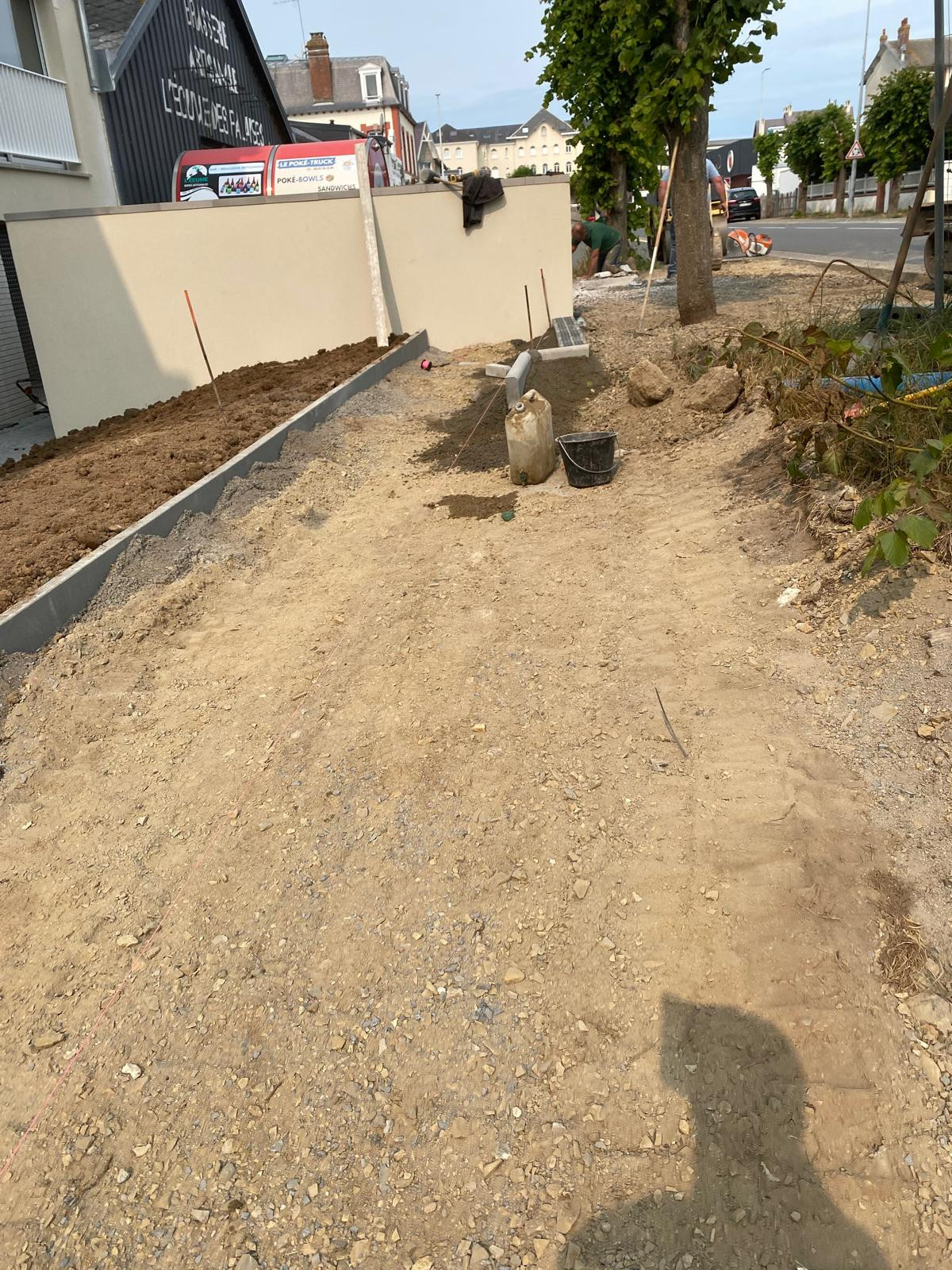 Nous sommes intervenus sur les abords d’un immeuble à Jullouville pour préparer les accès extérieurs :
